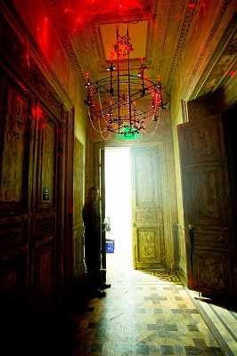 Conceived to respond to the historic surroundings, GNI created their piece 'Implied Candelabra', which explores and challenges the nature and conventions of the traditional chandelier. Using laser technologies and the principles of reflection and refraction to create a graphical 3-dimensional chandelier, it invites the viewer to explore it's meaning through it's changing perspectives.